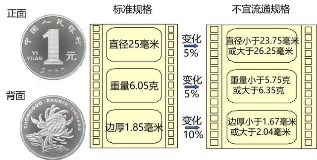 人民币纸币形状、尺寸发生变化,票幅长边与标准规格相差2%以上,或票幅宽边与标准规格相差4%以上的,为不宜流通人民币。
